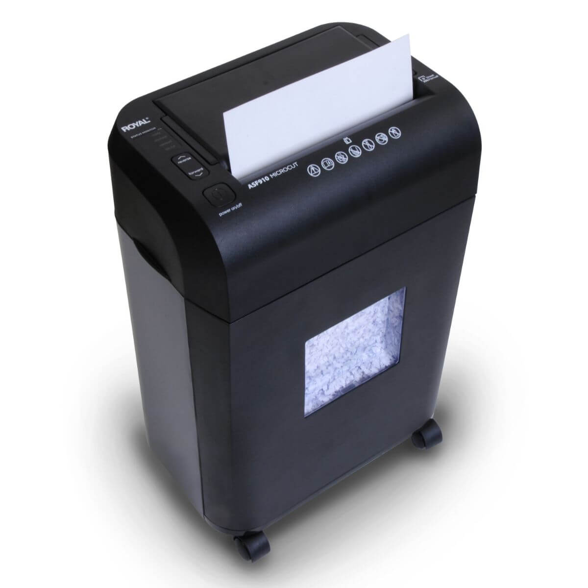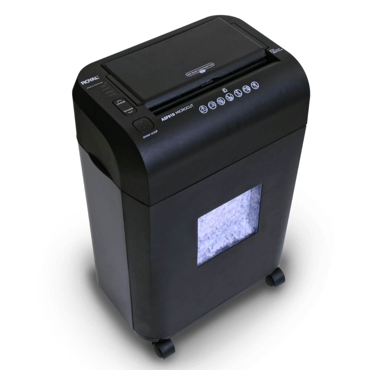 The Royal ASF910 100 Sheet Microcut Autofeed Shredder can shred up to 9 sheets of bond paper in a manual feed and 100 sheets in autofeed mode.
