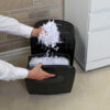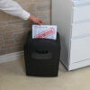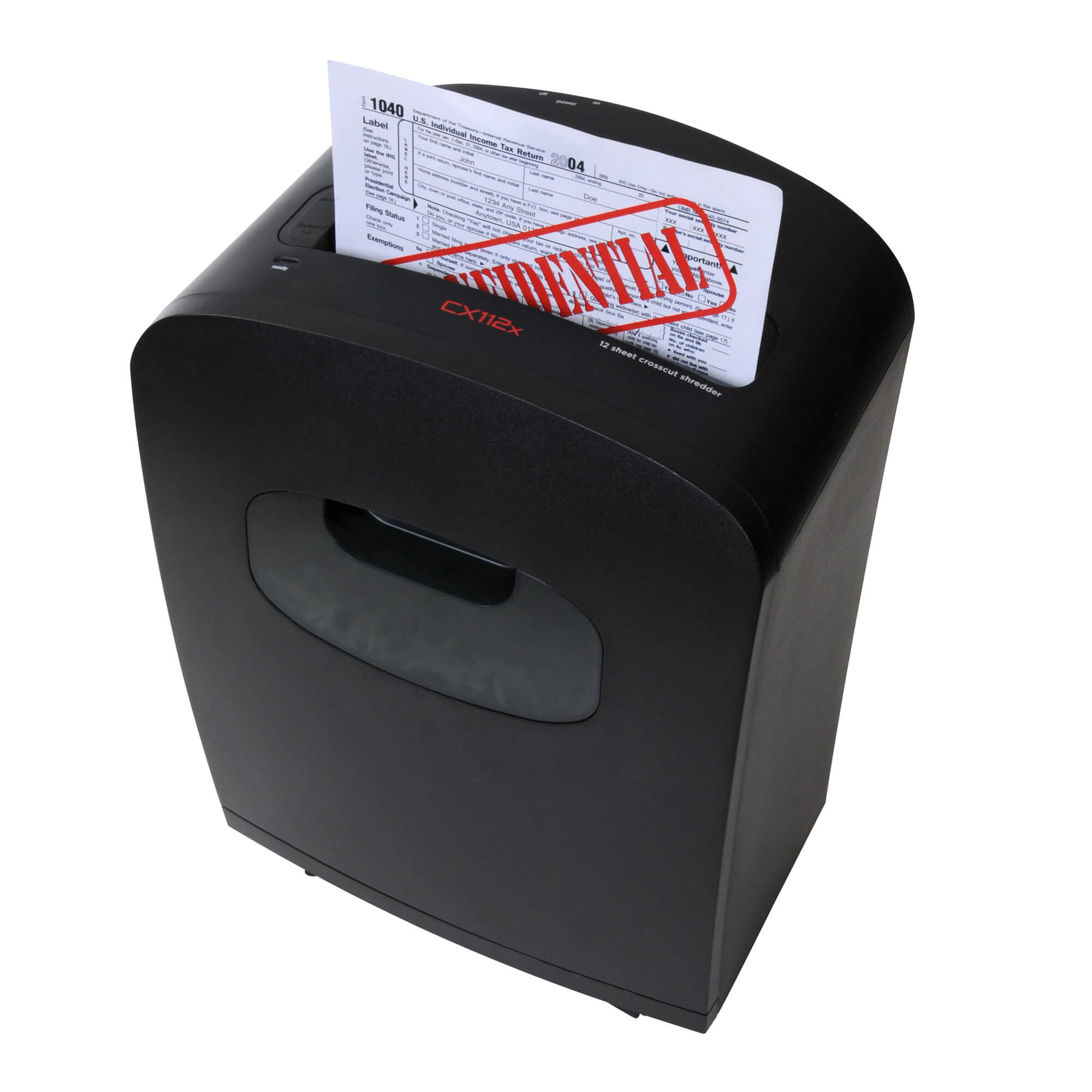 The Royal CX112X crosscut shredder is a great asset in your office that helps sort paper waste issue. This crosscut shredder can shred 12 sheets of paper in a single pass and has a 9-inch paper entry slot. The shred size is 5/32” by 1 5/8″, and aside from paper it shreds staples, and credit cards as well. This shredder has a pullout bin capacity of 3.5 gallons. It has the auto start/stop feature. It has a viewing window to check if the bin is full, interlock switch and jam free rollers. It comes with a warranty of one year on parts/labor and three years on cutting blades.