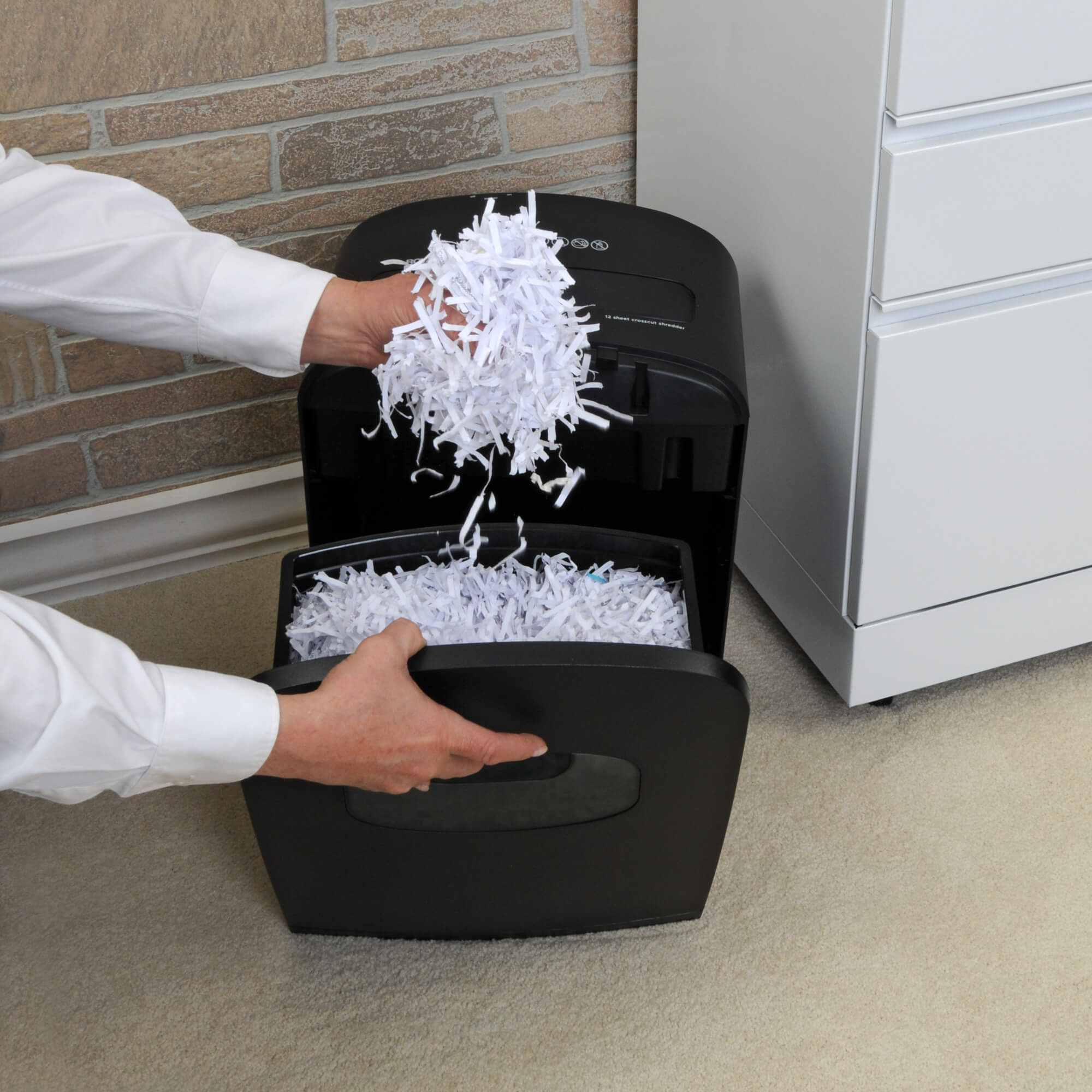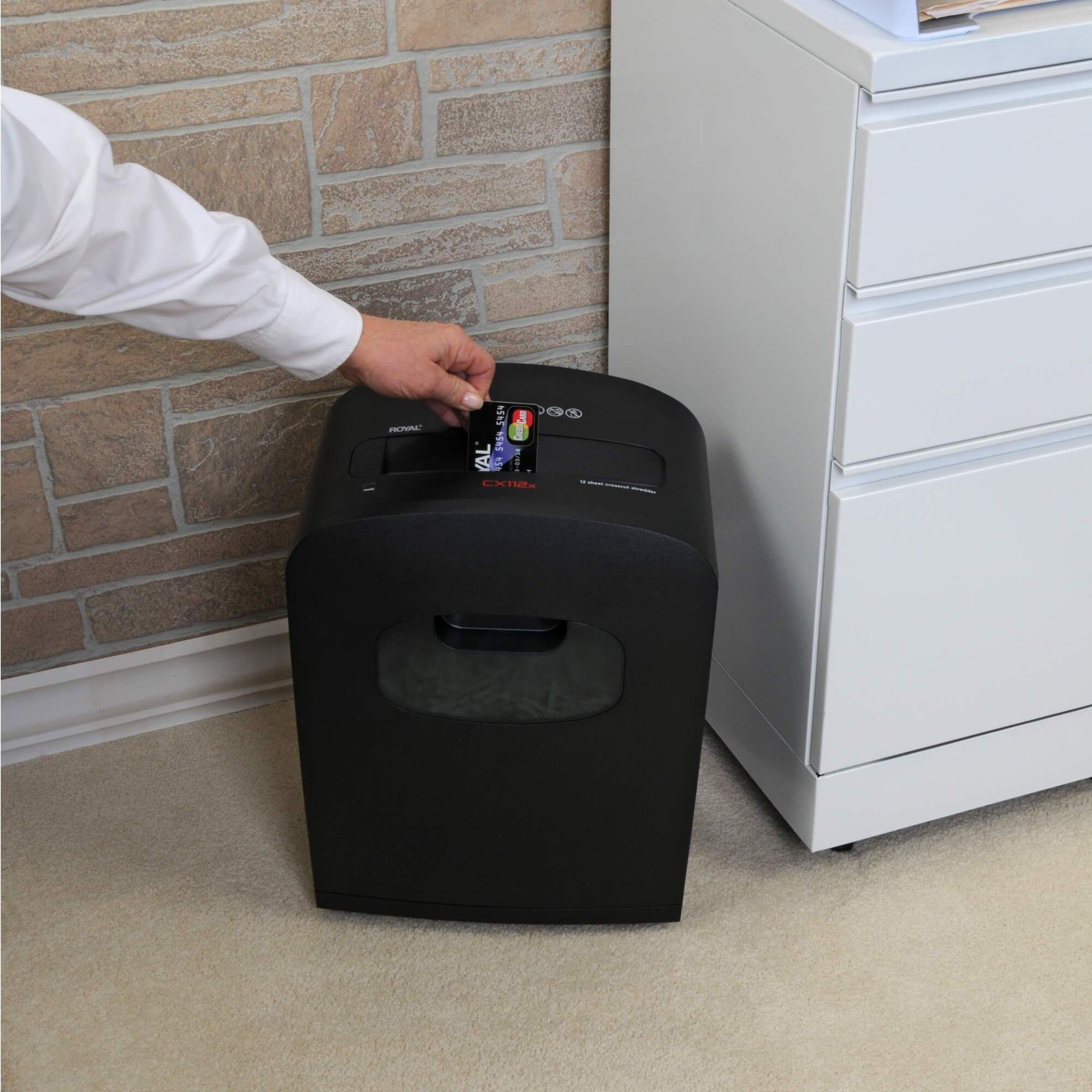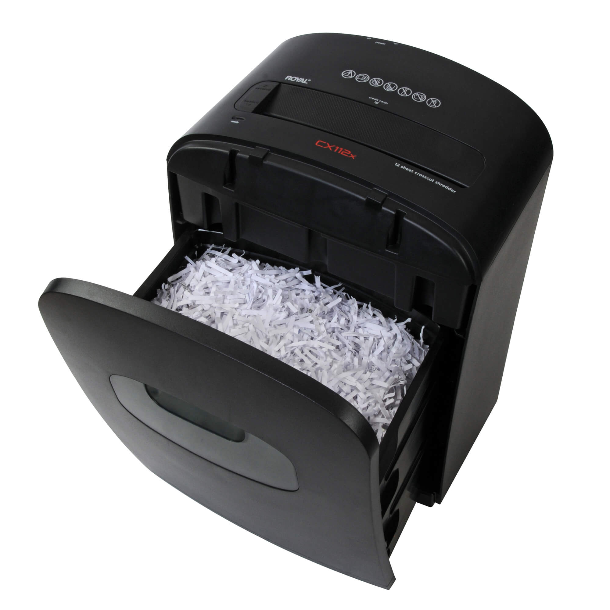 The Royal CX12 is a Crosscut shredder that shreds 12 sheets at a single pass. It can also shred credit cards